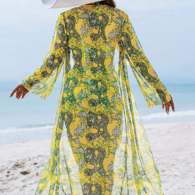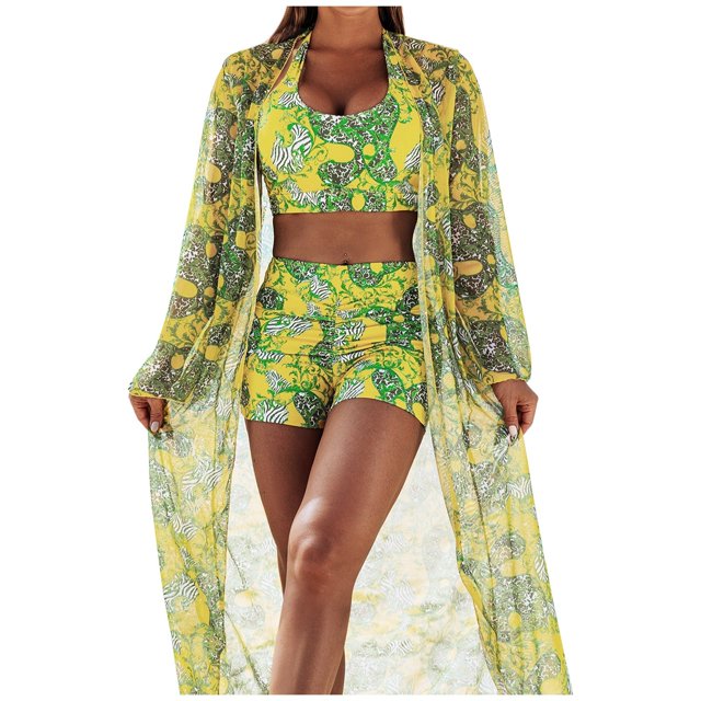 Women'S Piece Swimsuit Long Sleeve Beach Cover Up Boho Swimsuit Set Retro