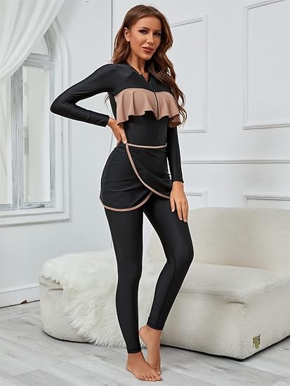 LCMU10 -3 Piece Set Women's Muslim Swimwear Full Cover Islamic Swimsuit with Hijab Long Sleeve Sport Burkini Wear Bathing Suit